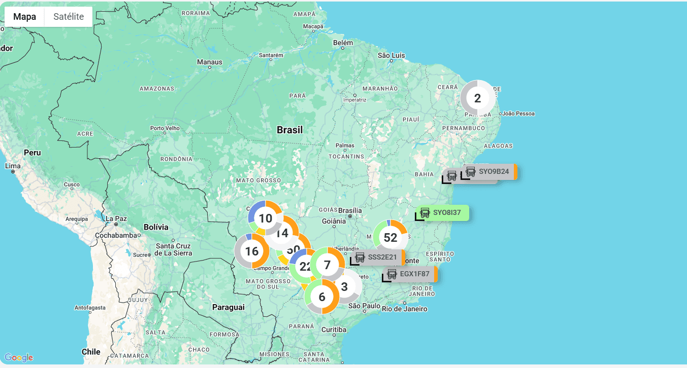 Acompanhamento completo de velocidade, rotas, consumo, troca de turnos e comportamento dos condutores.